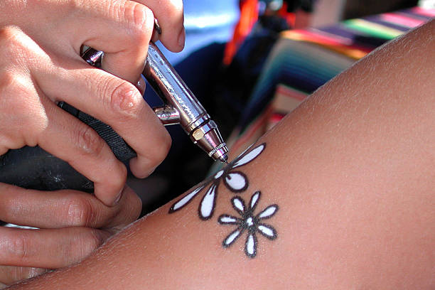 It is a unique way to have a temporary tattoo in any part of your body that can last for 2 weeks. Spray paint lightly onto the skin through the stencil.
